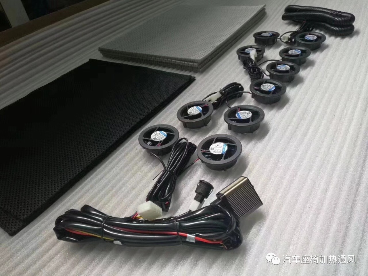座椅通风即设计人员用风扇向座椅内注入空气,空气从椅面上的小孔中流出,实现通风功能。乘客坐在座椅上时,身体后部与椅面紧密接触,接触部分空气不流通,不利于汗液的排除,会使人体感到不舒服。通风功能有效改善了人体与椅面接触部分的空气流通环境,即使长时间乘坐,身体与座椅的接触面也会干爽舒适。 通风系统噪音:要求座椅空载时,测试通风装置工作噪音小于50分贝。 工作电压范围:通风装置工作电压为+9V到+16V。当工作电压低于工作电压时,会低压保护自动短路,通风装置停止工作。 进出模拟:试验将一个标准假人臀部,在一定角度内摆动,将假人臀部从坐垫内侧向外侧旋转,臀部旋转至最外侧时为一个循环周期,共需要进行规定次数的周期。试验后要求通风功能完好无损。 膝部试验:试验将一个模拟膝部的球头,加载一定的力在坐垫上(下面有通风装置区域),一个循环周期为上下运动,共需要进行规定周期。试验后要求通风功能完好无损。 坐垫、靠背驾驶模拟试验:室温下,假人模拟正常坐姿乘坐在坐垫/靠背上,实验分别进行规定周期,实验结果要求通风功能完好无损。 热成像响应一通风装置:室温下,将待试验座椅加热到500C,开启通风开关,要求每隔一定时间测试下座椅通风区域温度,要求温度变化在通风区域无明显变化。
